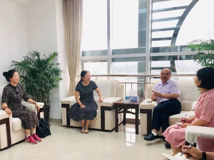 赣州稀土友力科技开发有限公司总工程师、89届优秀校友肖卫东女士(右二)带领团队成员走访企业
