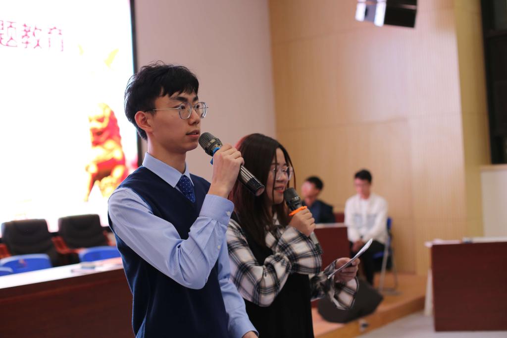 余江涛做了讲话。他对创新形式开展深入推动主题教育表示高度肯定,对党员带头学习,广大同学们踊跃参与,表示高度赞扬。他希望广大党员同学坚持文理结合,广大吸取人文知识、学习中国传统文化知识,打好科学文化基础;坚持红专并进,既掌握专业技能,练就过硬本领,同时又注意思想政治理论的学习与提高;坚持学用结合,把习近平新时代中国特色社会主义思想的学习成果、体会收获运用到学习工作中,加强思想武装,推动实际工作。