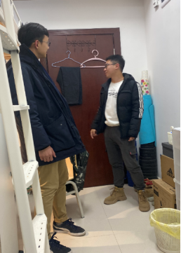 为贯彻落实学校《关于加强岁末年初安全生产工作的通知》,1月14日晚22时许,学院辅导员唐伟前往学生宿舍,做假期宿舍安全排查,检查宿舍相关卫生、消防、用水用电相关情况,向申请假期暂缓离校的同学们表示慰问并送上学院的祝福。