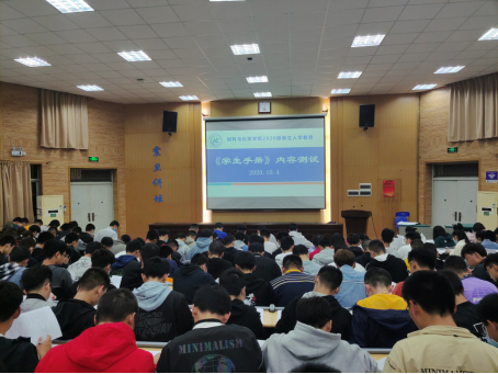 同时,在新生军训过程中,学院有机组织全体新生学习2020版《学生手册》,了解手册中关于学业要求、纪律规范等重点内容,做到心中有政策,脑中有规则,做到遵规守纪,养成良好的生活学习习惯。