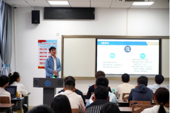 各部门介绍完毕后,经济管理学院学生代表谢琨淮进行发言,他首先代表经济管理学院全体师生向本次大会的顺利召开表示了祝贺;随后他从个人经历出发,分享了在学生组织工作的经验和感悟,他表示“做好分内之事” 是一名学生干部的底线,要在这个基础上互帮互助,向共同目标前进,更要主动思考,寻求创新;最后,他也向kaiyun开云官方网站新一届学生组织表达了美好的祝愿。