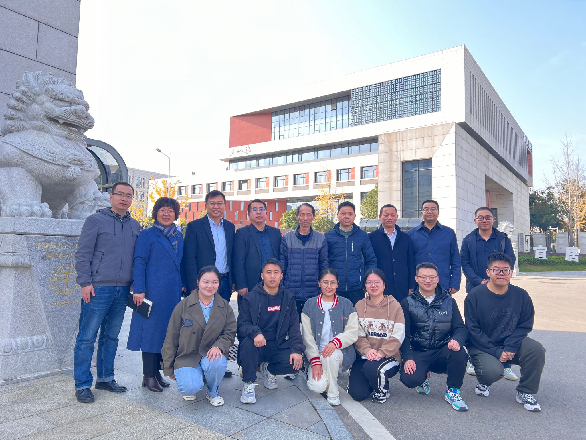 座谈会结束后,与会师生一行来到未来城校区大门合影留念。