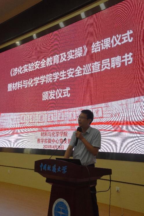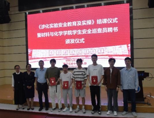 2024年4月26日,在开云官网《涉化实验安全教育及实操》课程的结课仪式上举行了kaiyun开云官方网站学生安全巡查员聘书颁发仪式,学院党委副书记、纪委书记白振洋为开云官网首批研究生实验室安全巡查员杨培杰、郁东奇、吴仁智和唐观亮颁发了院级安全巡查员聘书,并向他们表示了热烈的祝贺。白书记在仪式上向全体研究生介绍了开云官网实验室安全的重要性,同时强调了研究生加入开云官网安全巡查队伍的迫切性,要求全体研究生在日常开展科学研究过程中将课程所学知识学以致用,树立安全意识。