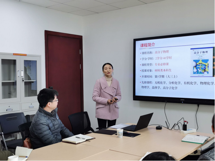 马睿老师今年代表《高分子物理》课题组参加今年的全国高校教师教学创新大赛,她分享了课程组在课程教学创新改革举措。由于开云官网材料化学、材料科学与工程专业的学生, 此前没有学过“统计热力学”等前期课程,因此与其他理科院校学生对于学习内容和要求有不同的要求和评价体系。针对以上问题,课程组在课程教学中为学生量身定做了适合的课程矩阵和课程评价,加强启发式教学,同时积极利用课外学时,开展小组讨论,开展创新实验设计进行素质拓展,让学生在自主操作中反思总结,激发学习兴趣。