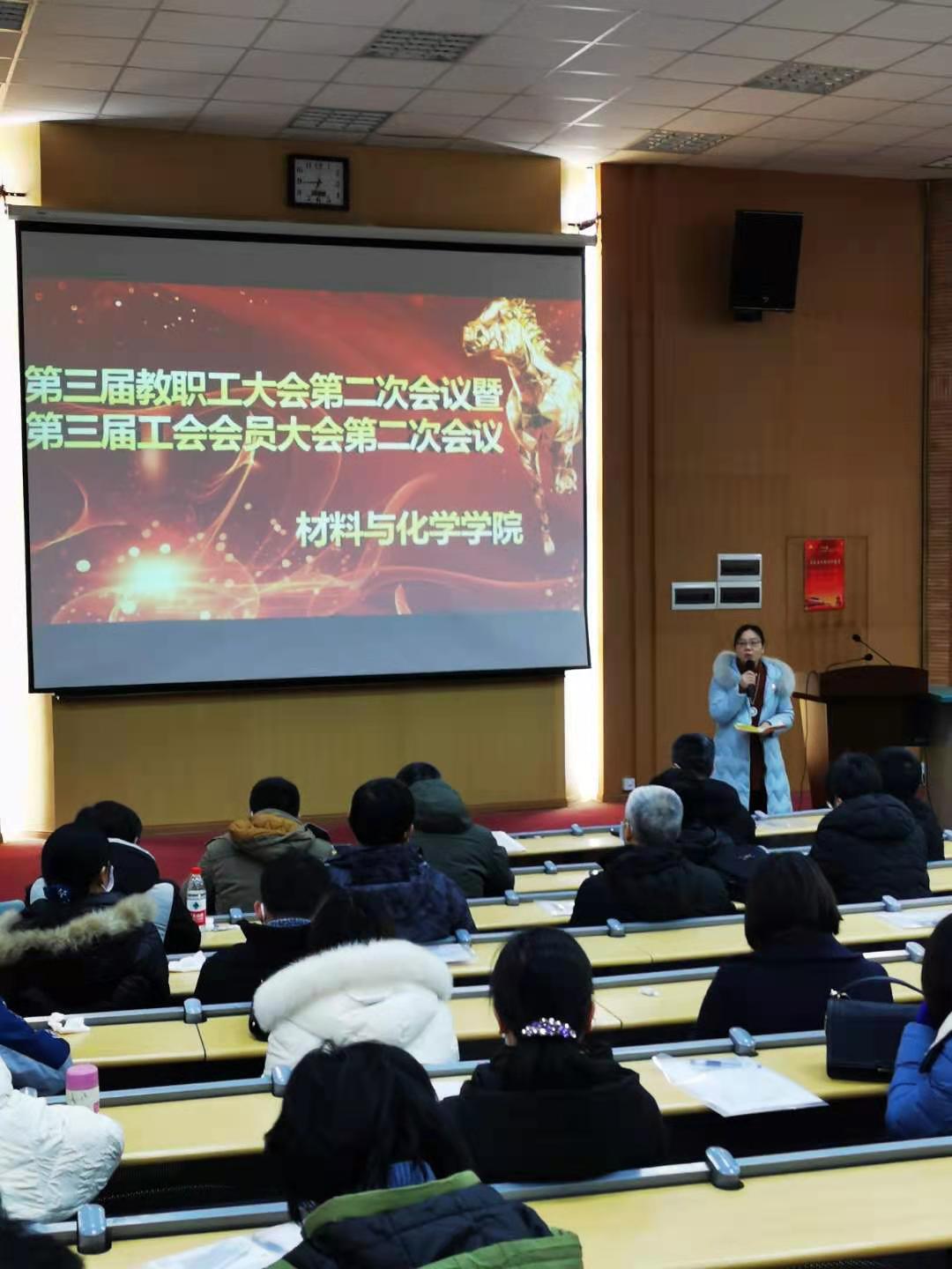 (材化学院分工会沈毅李飞)2021年1月10日下午,材化学院第三届教职工大会第二次会议暨第三届工会会员大会第二次会议在教三楼109隆重召开。王华副校长、校工会副主席杨世清及材化学院全体教职工参加大会。
