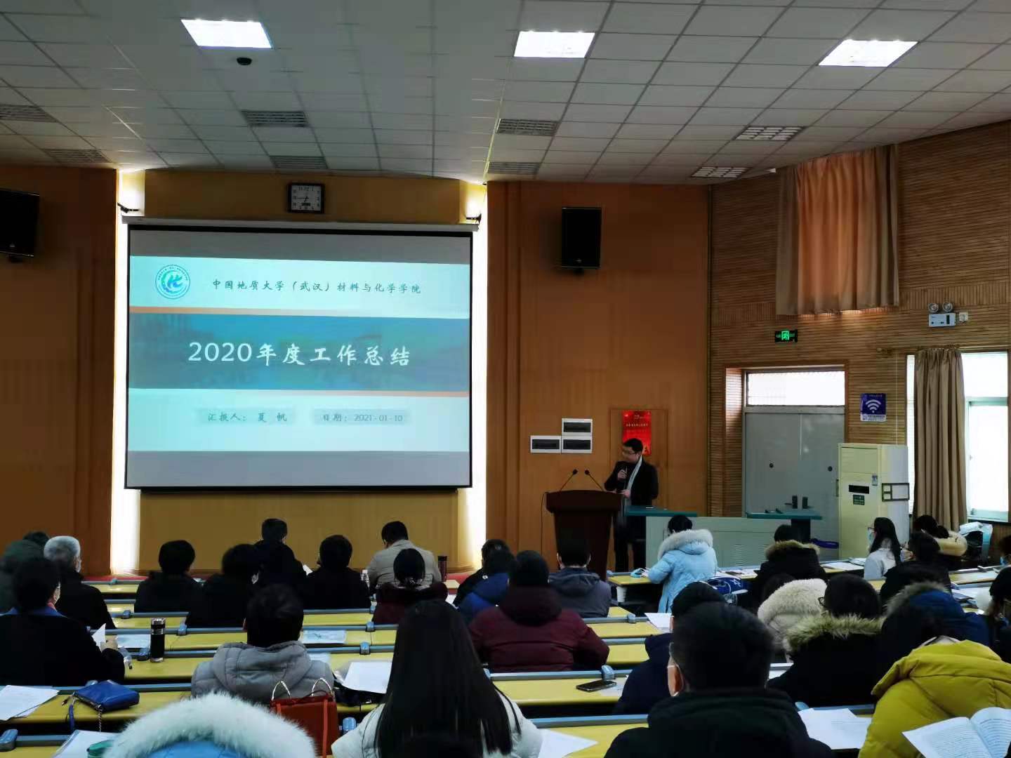 材化学院院长夏帆同志作题为《2020年度工作总结》的2020年材化学院工作报告。报告总结了材化学院一年来充分发挥党委政治核心作用,总结了一年来在持续推进教育教学改革、培养一流本科人才、加强学科及学位点建设、优秀人才引进、重点项目突破、加强科研团队及平台建设、加强实验教学及日常管理等方面开展的工作及取得的成绩,并提出了2021年材化学院工作重点,号召全院教职工共同努力,在2021年材化学院各项工作再上新台阶。