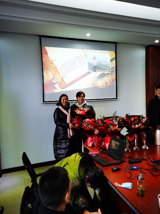 2021年1月11日下午,kaiyun开云官方网站老师们在东区综合楼B708隆重集会,为2020年光荣退休的陈艳玲、魏昌华、吴超、万安娃、魏青和王传金6位老师举行“终身成就奖”颁奖典礼。大会由材化学院工会主席沈毅主持,出席大会的领导有院长夏帆教授,黄菊书记及材料系、化学系和实验中心主任、副主任。夏帆院长在致辞中充分肯定了6位老师在几十年的工作中为学院在教学、科研和学科建设中做出的杰出贡献。夏院长饱含深情的说到:几十年来,6位老师在各自的工作岗位上,勤勤恳恳,任劳任怨,忘我工作,把自己的青春和力量无私地奉献给了高等教育事业,把自己的工作热情和智慧奉献给了你们钟爱的材化学院,我们要将他们的优良传统和认真工作的态度传递和发扬下去,把我们材化学院建设得更美好。在他们退休之际,材化学院领导及老师们见证他们的荣光,将材化学院最高荣誉—终身成就奖授予他们。
