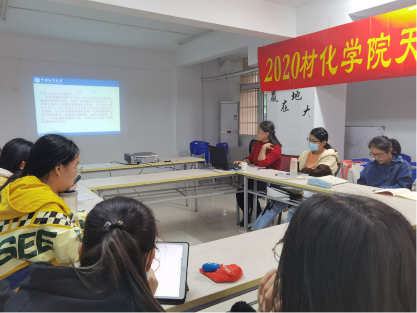 此外,万老师还就自己所教授的研究生课程《化工伦理》与同学们展开探讨,她表示,作为材化人应该着重关注自然灾害问题,如温室效应,地震等,并举例九寨沟地震,汶川地震。而后,以化工伦理为中心,万老师指出伦理与道德的联系与区别:伦理常与道德关联使用,道德更突出个人所遵循的准则,伦理更强调整体所应该遵循的可制度化的规范。并向同学们介绍了伦理行为四组份模型,即伦理敏感性,伦理判断,伦理意图,伦理品质。