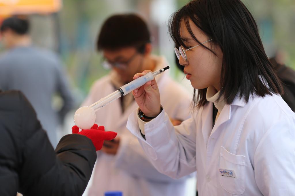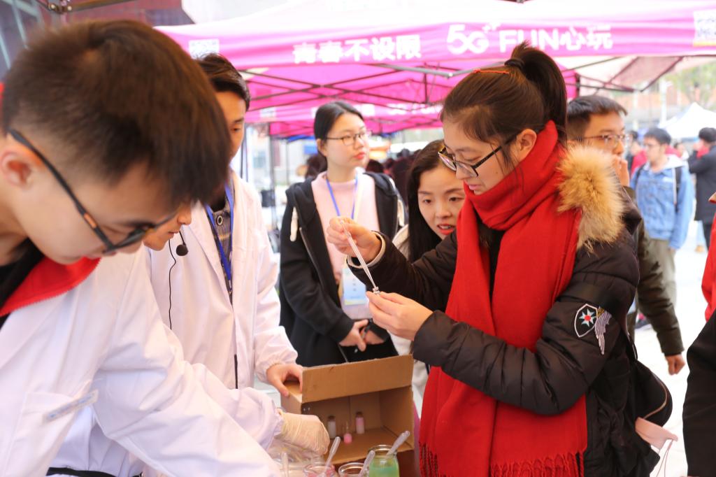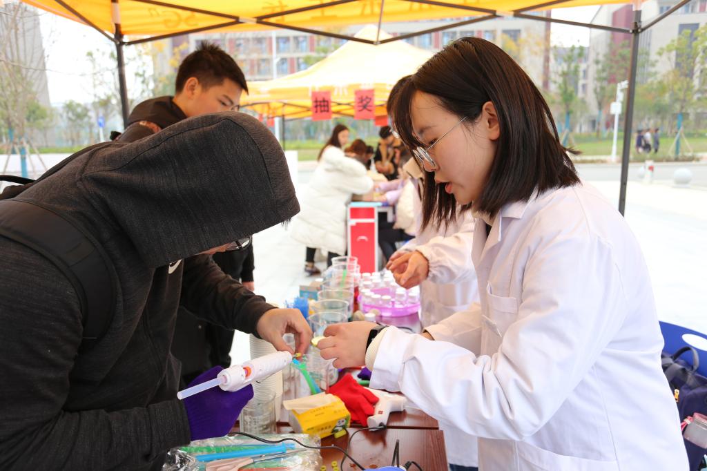 “一杯矿泉水摇身成为草莓牛奶”、“隐形墨水传递神秘信息”、“飘落的树叶如何定格为书签”、“钻石和花朵结合成为晶枝玉叶”、“未来城校区的第一场雪”...11月28日下午,这一幕幕神奇的场景真实地上演在kaiyun开云官方网站(武汉)未来城校区大学生活动中心南广场上。