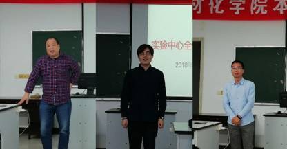 实验中心新领导班子见面会由实验中心全体老师参加,并邀请上届主管实验室工作的周俊副院长、现分管院领导公衍生副院长、上一届班子成员郑洪涛老师出席,会议由公衍生副院长主持。首先,公院长宣读了学院任职决定:夏开胜同志任教学实验中心主任,黄绪桥、周森和田欢三位同志任教学实验中心副主任,并分别介绍了每位同志的具体分工。随后,夏开胜老师发表了感言,感谢学院领导和实验中心全体老师的信任和支持,感谢上一届班子为中心建设所做的巨大贡献,并同时深知自身责任重大,表示今后要虚心受教、集思广益、团结班子成员,带领中心老师们努力建设好实验中心,为材化学院的发展做出更大贡献。接着,黄绪桥、周森、田欢三位新任副主任分别上台发言,承诺一定会精诚团结,努力工作,认真履行职责,乐于奉献,竭力为实验中心的发展做出更大的贡献。
