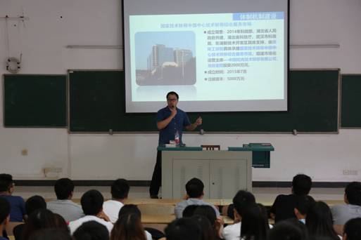 徐沛歆首先简要介绍了国家知识产权运营公共服务平台,并由一副卡通图片深入浅出的向大家讲解了专利申请的作用及重要性,接着他从知识产权的重要性、知识产权基础概念、专利申请流程及注意事项与国家政策四个方面为大家进行了详细的讲解。期间,徐沛歆老师在讲解中所例举的手机、“农夫山泉”饮用水等实例引发了大家的思考,让同学们对“什么是专利”、“专利的市场价值”、“为什么要申请专利”、“如何从专利文献总结出发明规律”以及“怎样申请专利”有了更全面的了解。