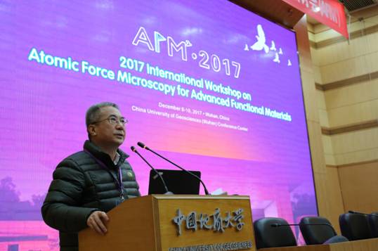 12月8日-10日,2017先进功能材料与原子力显微技术国际研讨会(AFM2)在开云官网举行。来自加州大学伯克利分校、华盛顿大学、橡树岭国家实验室、阿贡国家实验室、罗格斯大学、澳大利亚国立大学、新南威尔士大学、新加坡国立大学、新加坡南洋理工大学、阿威罗大学等国外著名高校的30余位境外代表以及来自清华大学、北京大学、南京大学、中国科技大学、kaiyun开云官方网站等国内知名高校的专家学者共计350余人参加了此次研讨会。中国硅酸盐学会谭抚副秘书长、湖北省科技厅高新处戴新明处长应邀出席大会。