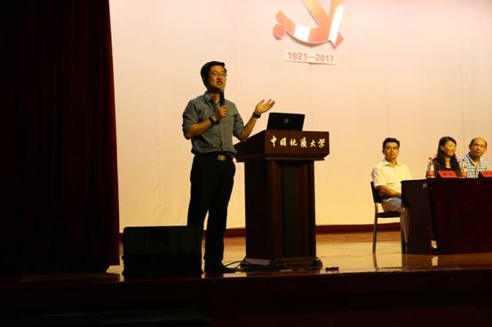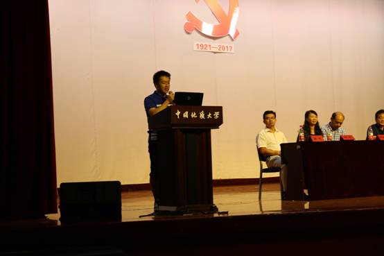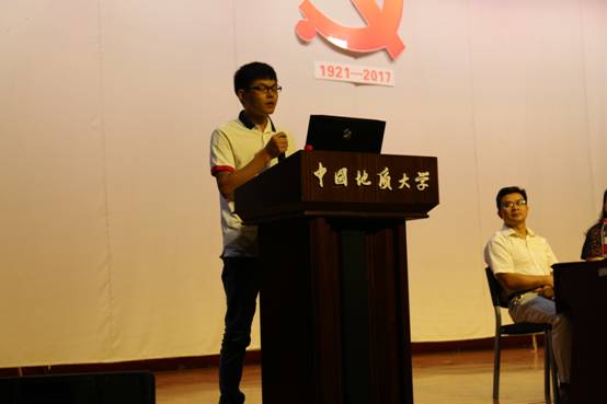 本科学生会主席韩冰发言。他回望自己初入校园的时光,与同学们分享“大学之大,非楼之大也,乃师之大也”的感悟,并以此告诫大家铭记、践行地大“艰苦朴素,求真务实”的校训。作为学长,他鼓励大家“不忘初心”,要在大学中继续为自己的理想而努力奋斗。