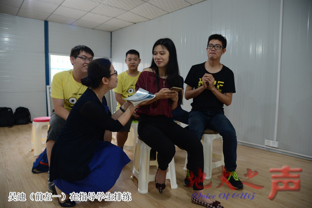 (记者徐燕 通讯员程果 刘潇予 摄影张玉贤)“你吃面的时候,面要用卫生纸代替一下,不然不够逼真;不是我吃,是‘我’吃,要改语气......”五月底的一个大雨磅礴的早上,记者来到学海楼后面一个简易工房,现场观摩kaiyun开云官方网站(以下简称“材化学院”)星火话剧社的节目排演。 在这里,材化学院辅导员、星火话剧社的指导老师吴迪时不时地纠正学生在表演中的不足,有时还声情并茂地示范起来。 面对一年一个代沟的“90后”学生,说教式的工作方法和铺摊子的工作思路是否依然奏效?如何用青年学生喜闻乐见的方式实现有效的思想引领,培养学生对专业的认同感,从而使更多学生成长成才?热爱话剧表演的吴迪时常琢磨着这个问题。受学校原创话剧《大地之光》的启发,在学院学工组全体老师的努力下,2013年,星火话剧社诞生了。 话剧社诞生之初,举步维艰。没有演员怎么办?现任话剧社社长、031132班朱敏颖告诉记者,在大一新生入学之初就进行“扫楼”,即到每一间寝室进行招新宣传。演员没有表演经验又怎么办?请来学校子非鱼戏剧社的同学进行指导,吴迪更是时不时亲自上阵。