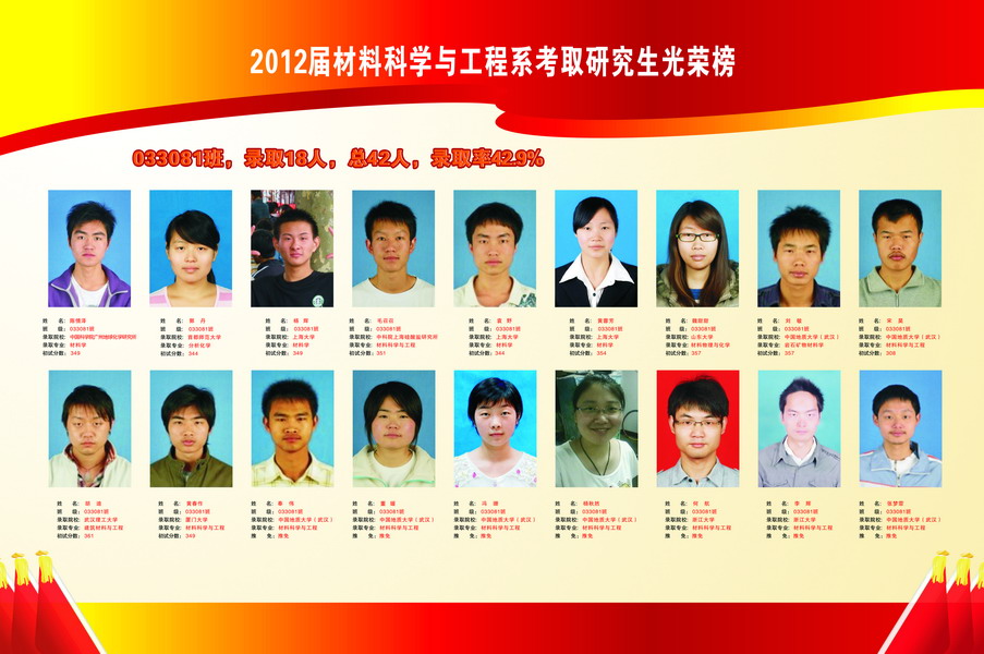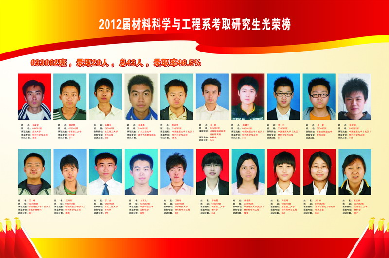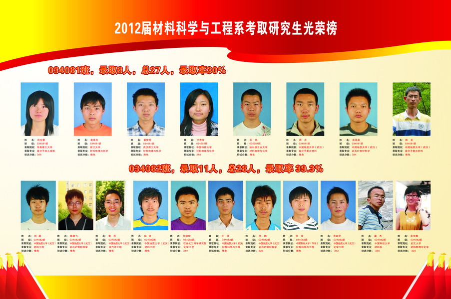 2012届材料科学与工程系考取研究生光荣榜