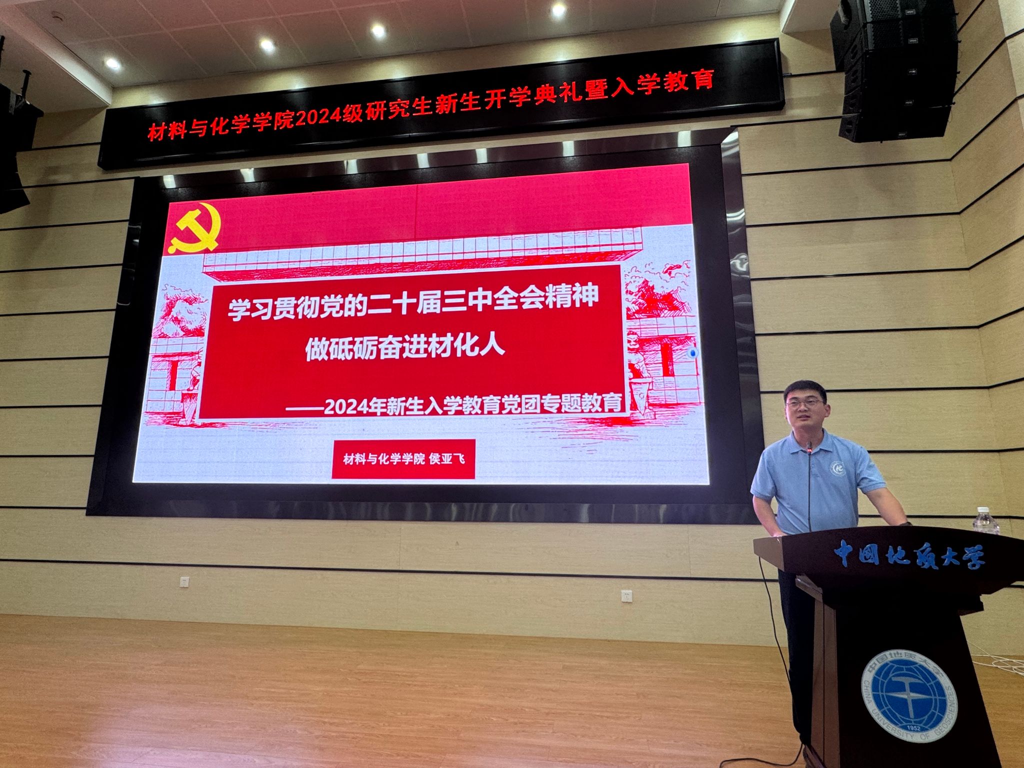 入学教育环节中,副院长周成冈、夏开胜,材料系主任梁玉军,化学系副主任张孝进,学校心理健康中心黄海,学校安全保卫部张献文及学院团委书记侯亚飞分别从研究生培养、实验室安全、专业介绍、心理健康、防诈骗、党团知识等方面与研究生新生做专题讲座。
