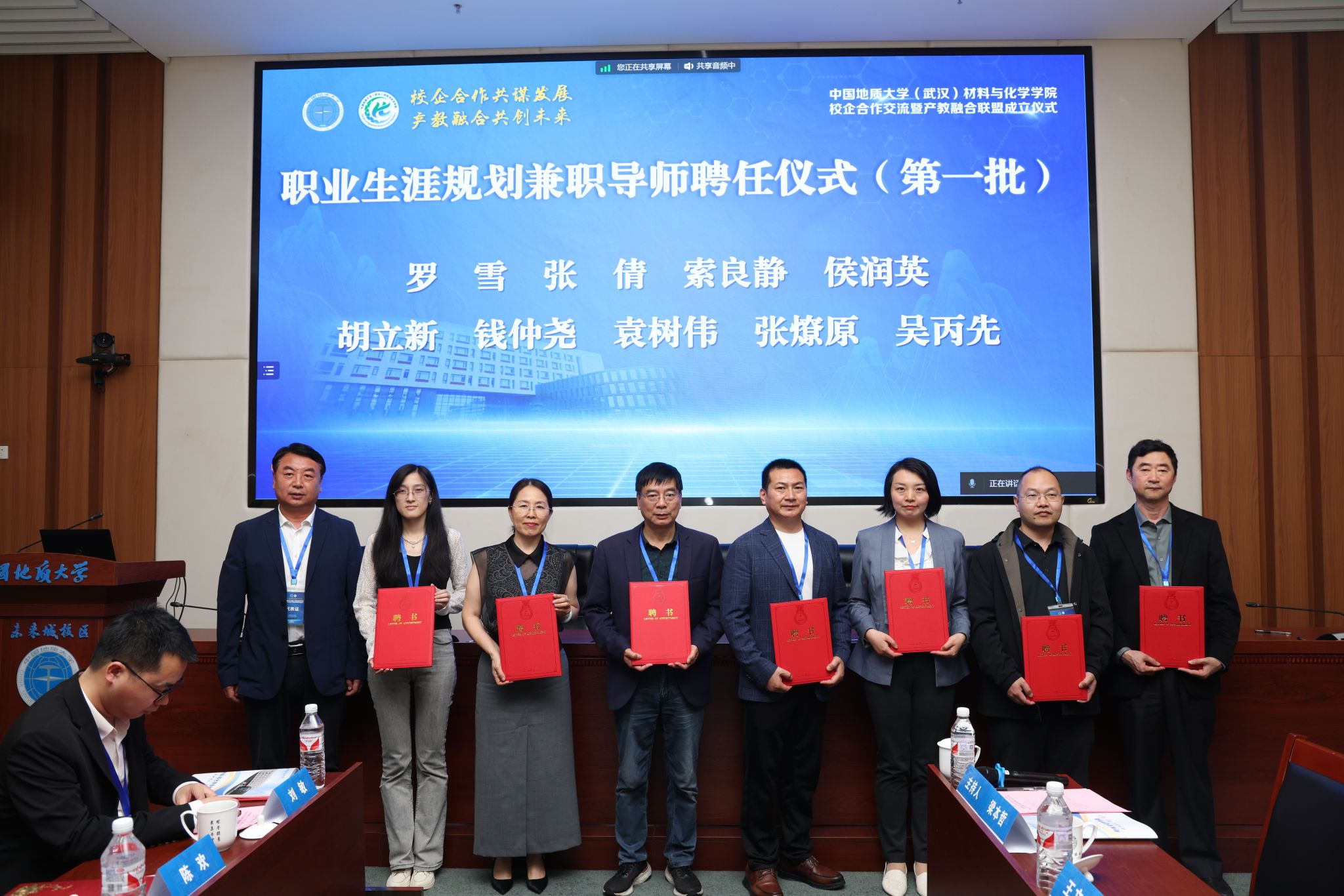 就业指导处处长吴堂高、未来城校区管理办公室主任王文起、党委学生工作部部长邬海峰分别为企业代表颁发创新创业兼职导师、职业生涯规划兼职导师、校外兼职辅导员聘书。