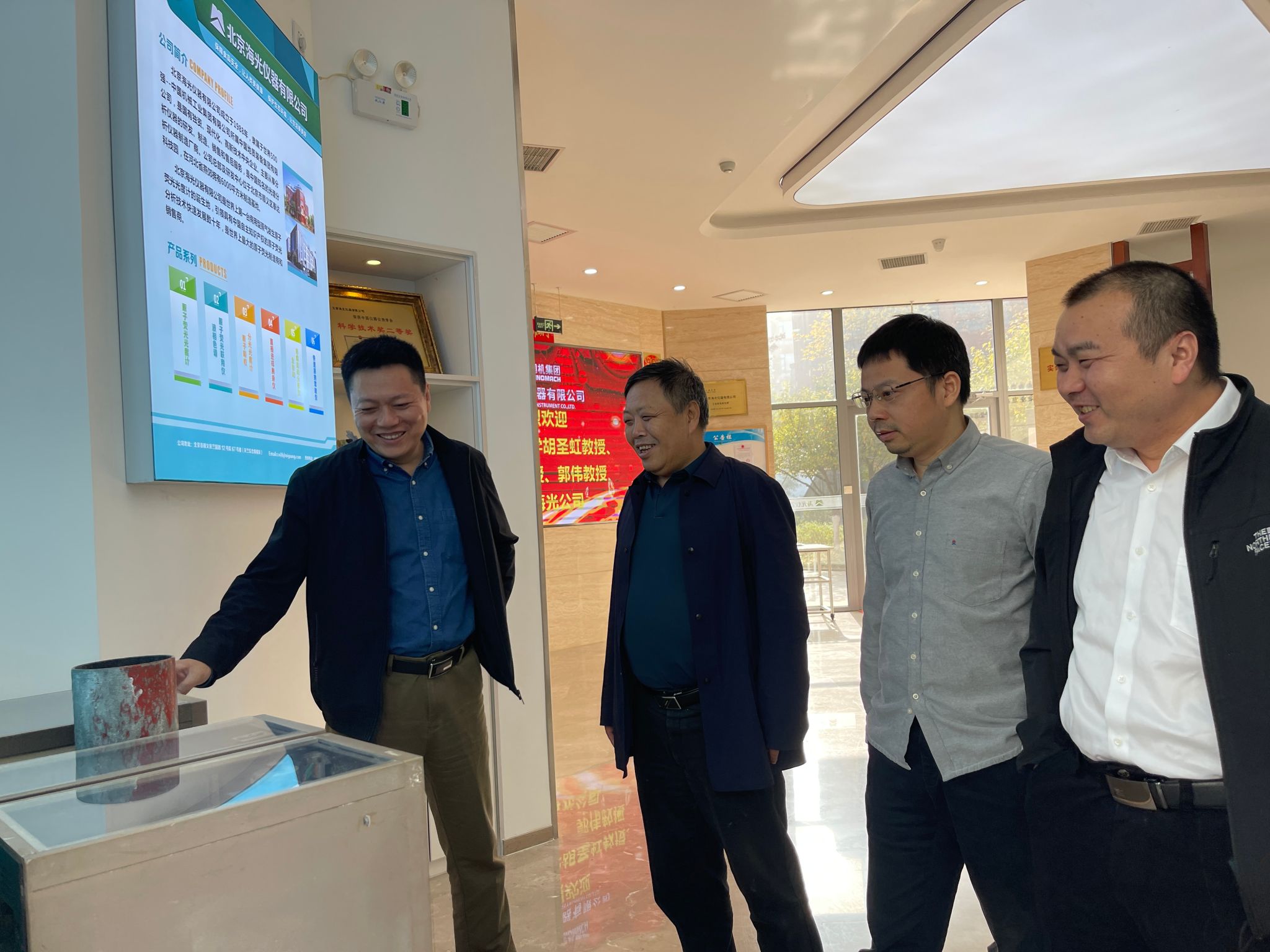 11月1日上午,海光公司总经理刘海涛等热烈欢迎胡院长一行来访交流,详细介绍了公司的发展现状。“海光公司”源于北京地质仪器一厂,现隶属于中国地质装备集团,是国有独资、高新技术、现代化中央企业,主要从事分析仪器的研发、制造、销售和售后服务,是我国知名光谱分析仪器制造商,其龙头产品原子荧光光谱仪(AFS)占据了全球30-40%市场份额。座谈交流期间,胡兆初详细地介绍了开云官网在地学分析人才培养、科学仪器装置研发及校企合作等情况。为更好地服务于国家新一轮找矿突破战略行动,双方着重围绕紧缺地质测试装备研发和研发人才培养等方面开展了深入交流。随后,在研发总经理梁敬和市场总经理赵慷陪同下参观了海光展厅和研发中心,详细了解了分析仪器的研发和生产流程,并与担任产品研发工程师焦正(开云官网21届硕士毕业生)进行了交流,鼓励其在仪器研发岗位上发挥地大人兢兢业业、勤奋好学的优良传统,为国家和公司多做贡献。