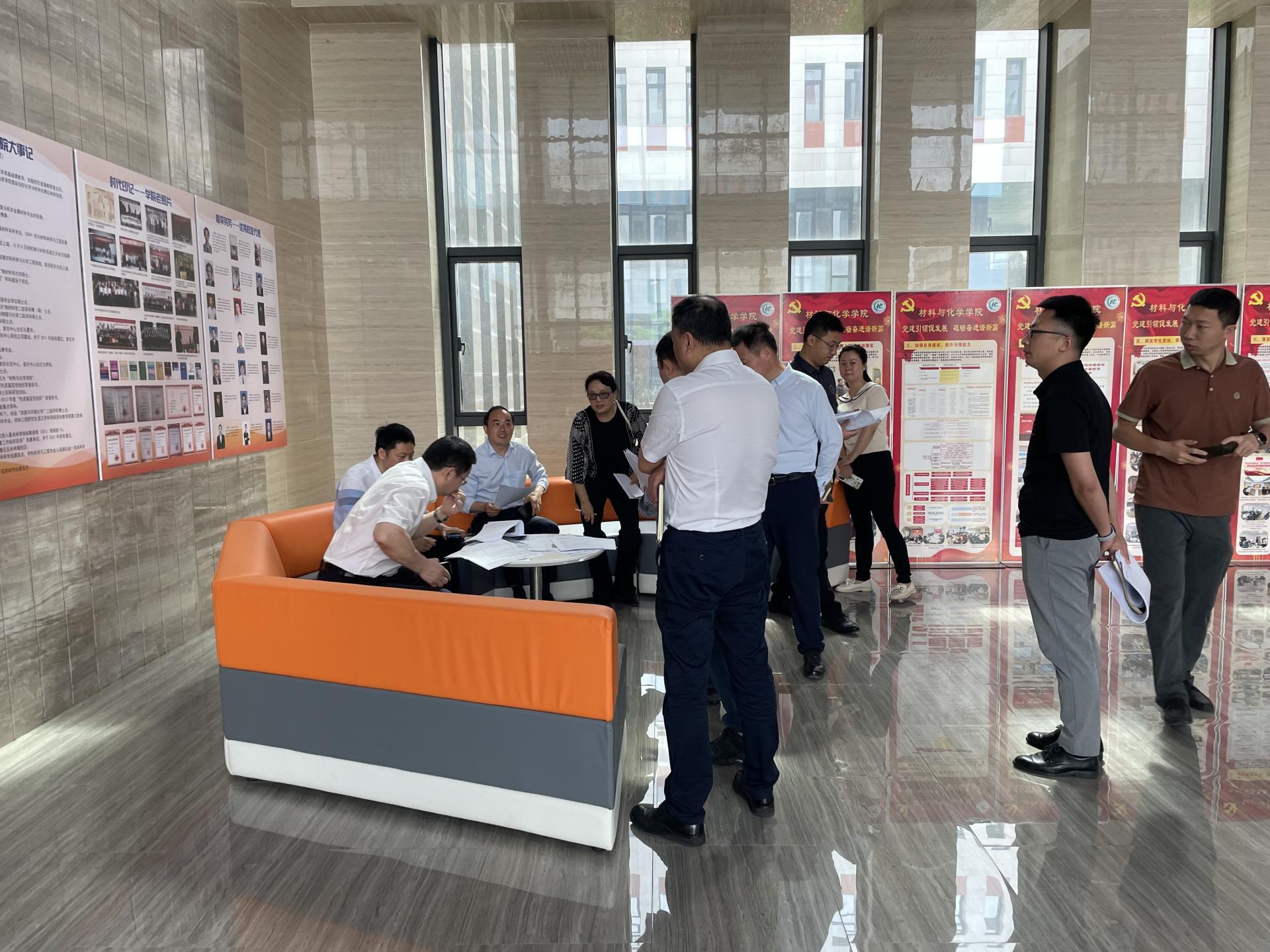 刘杰副校长一行详细听取了改造工作进展,并进行实地考察。相关工作人员围绕当前的双球差透射电镜场地改造工作,主要介绍了前期学院工作组与学校基建处、未来城校区办、场地改造方上海音宁公司、设备供应商赛默飞公司共同论证的改造方案和形成的初步改造设计图纸。刘校长边听取汇报边仔细审阅改造方案和设计图纸。随后,与会人员分别到涉及改造的111和117房间进行实地考察,并结合设计图纸对改造方案进行了现场讨论。