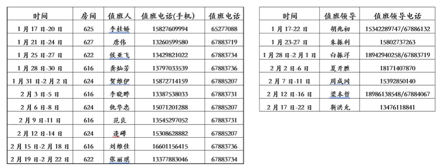 (一)学院寒假值班人员(见如下附表):